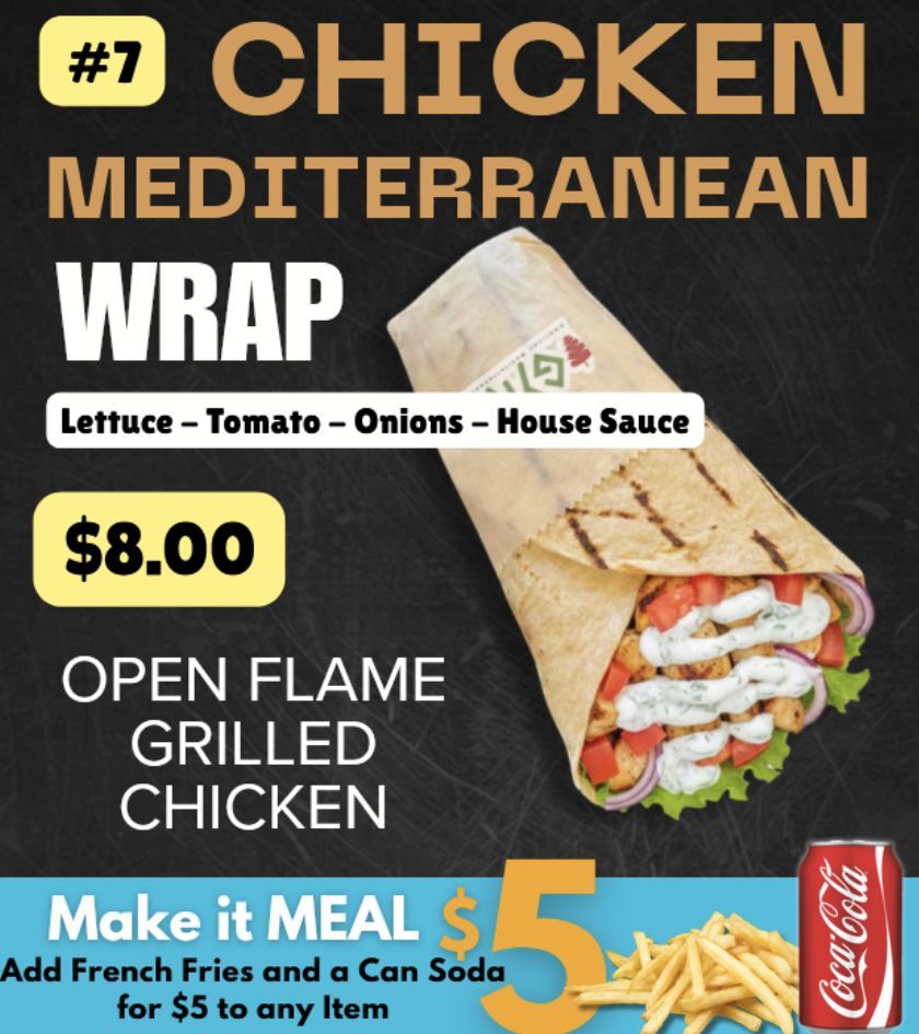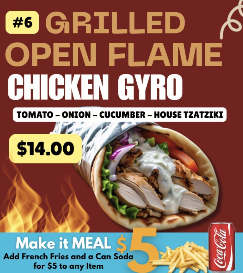 Bristol CouponsClassic House Meat Gyro SandwichGrilled Open Flame Chicken GyroChicken Mediterranean WrapChicken or House Meat Bowl